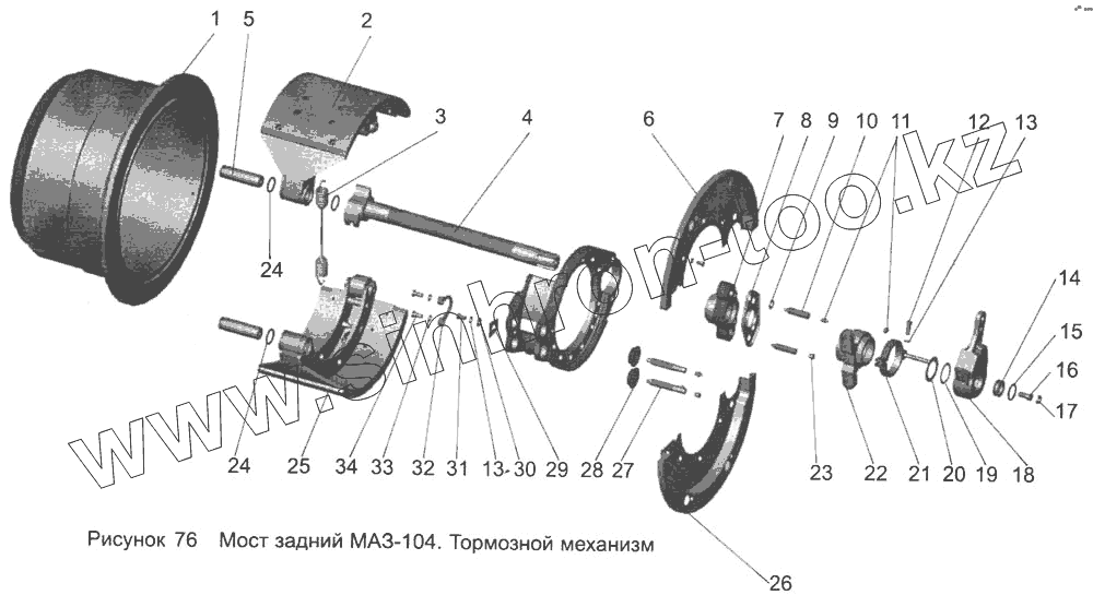 Каталог запасных частей к технике: АМАЗ МАЗ-103. Мост задний МАЗ-104. Тормозной механизм