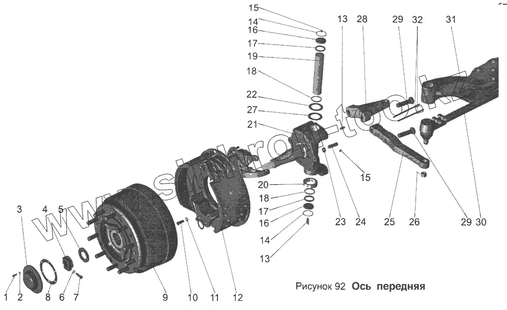Каталог запасных частей к технике: АМАЗ МАЗ-103. Ось передняя 104-3000015