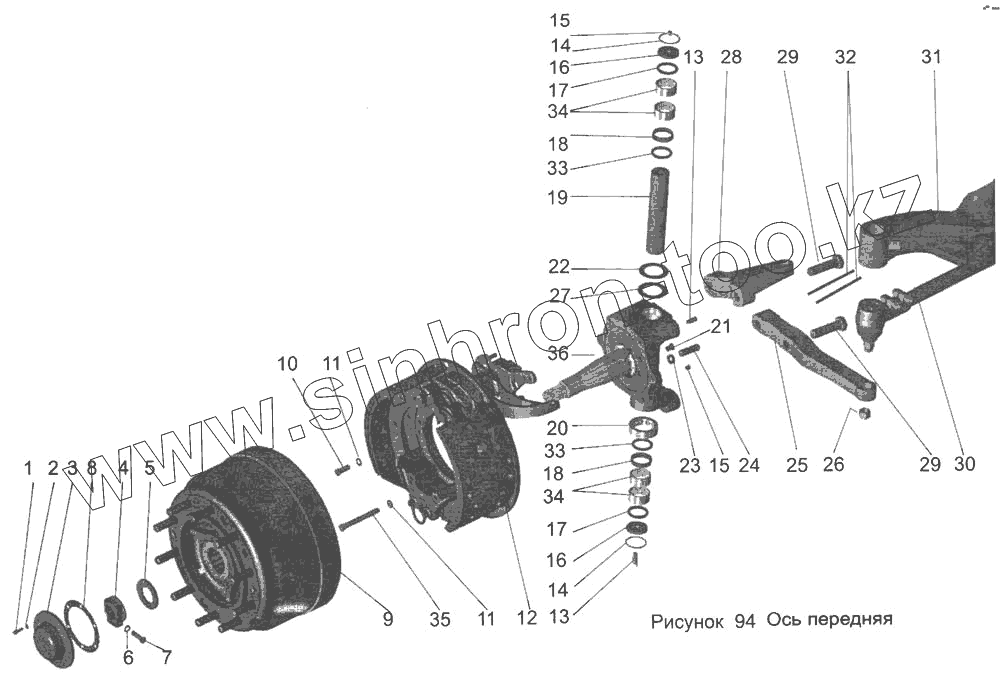 Каталог запасных частей к технике: АМАЗ МАЗ-103. Ось передняя 152-3000015, 152-3000015-010