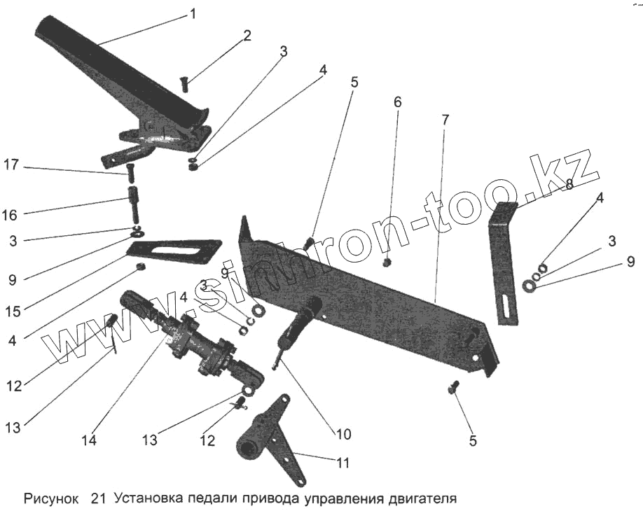 Каталог запасных частей к технике: АМАЗ МАЗ-103. Установка педали привода управления двигателя 104-1108003-31