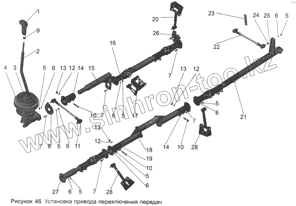 Каталог запасных частей к технике: АМАЗ МАЗ-103. Установка привода переключения передач