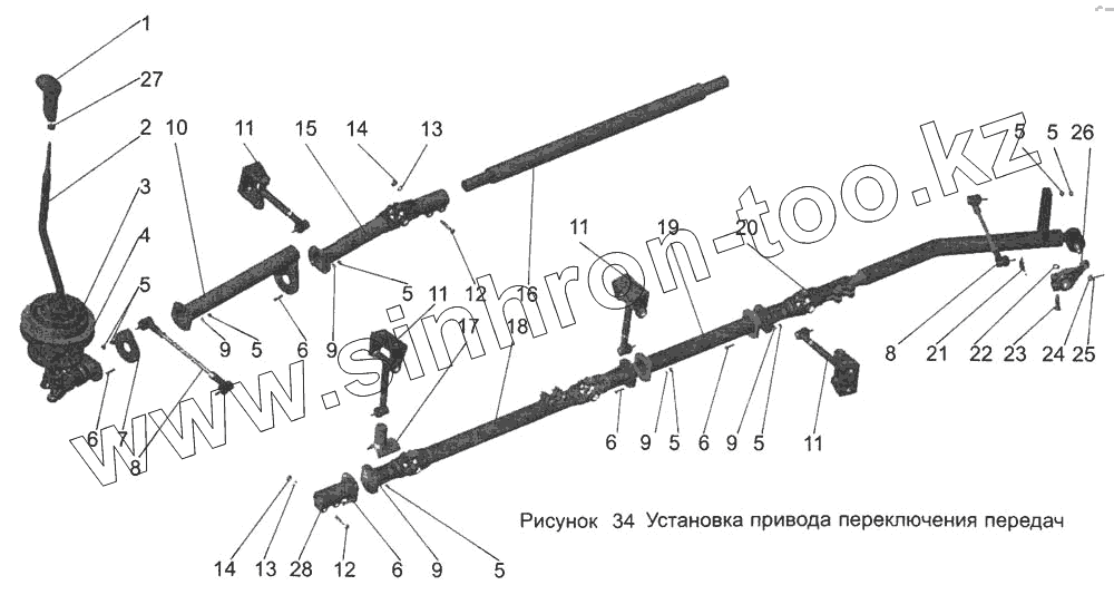 Каталог запасных частей к технике: АМАЗ МАЗ-103. Установка привода переключения передач 103-1703002