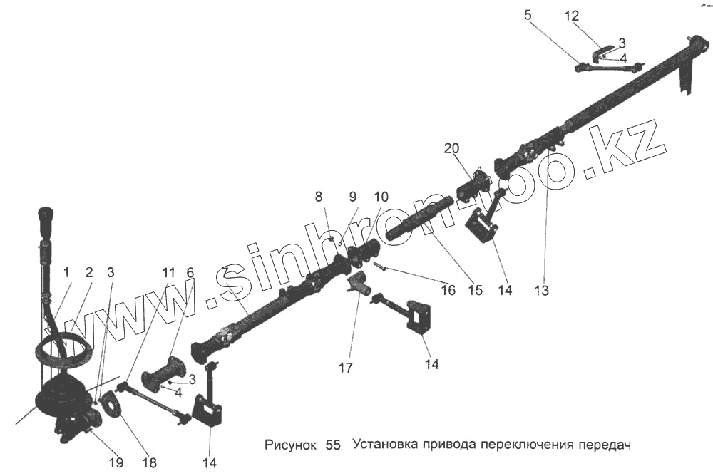 Каталог запасных частей к технике: АМАЗ МАЗ-103. Установка привода переключения передач 152-1703002