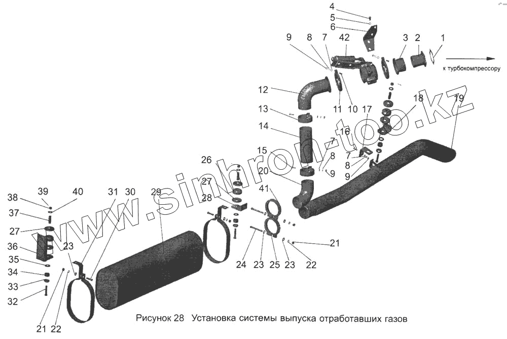 Каталог запасных частей к технике: АМАЗ МАЗ-103. Установка системы выпуска отработавших газов 103-1200001-41