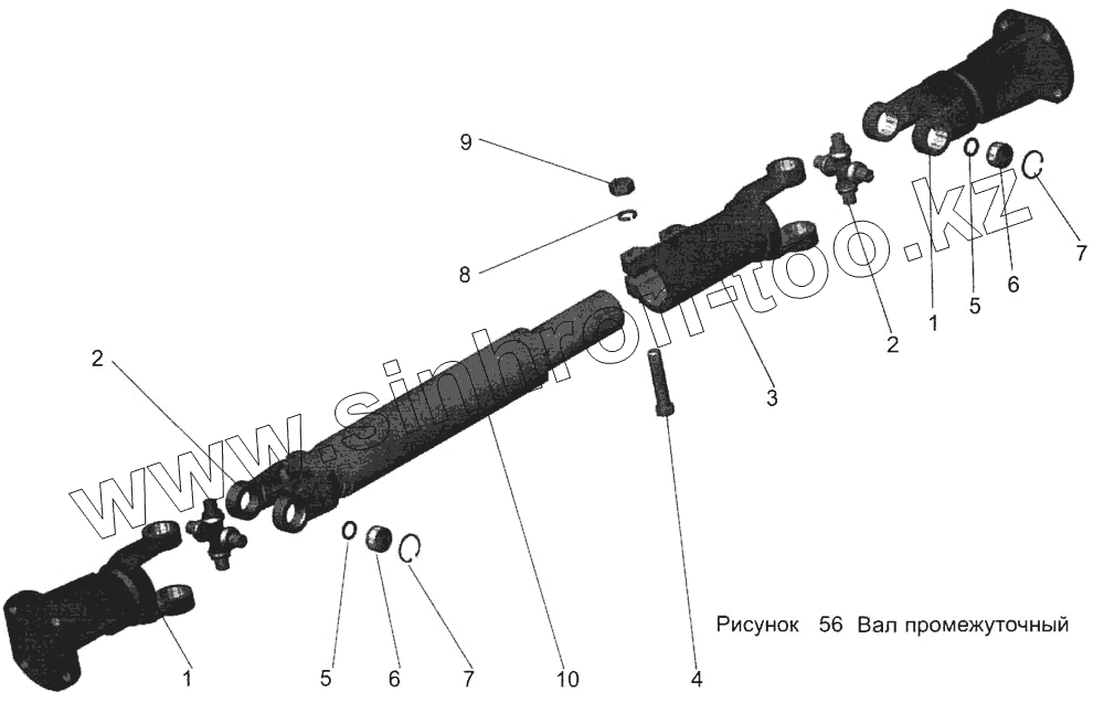 Каталог запасных частей к технике: АМАЗ МАЗ-103. Вал промежуточный 104-1703017