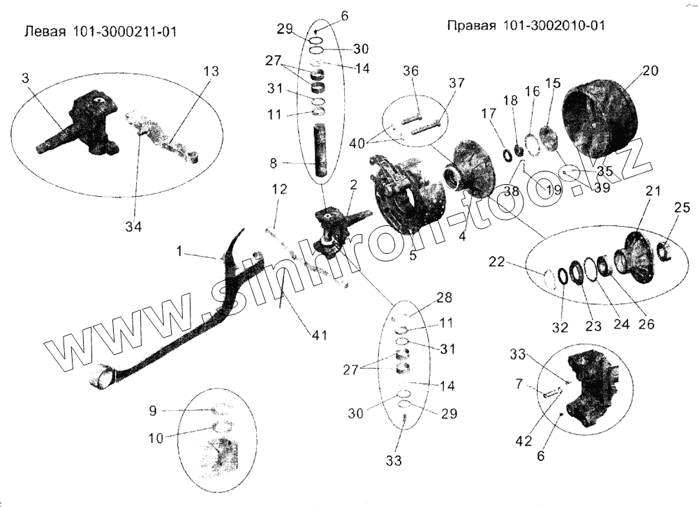 Каталог запасных частей к технике: АМАЗ МАЗ-103 (2005). Ступица с кулаком и тормозами