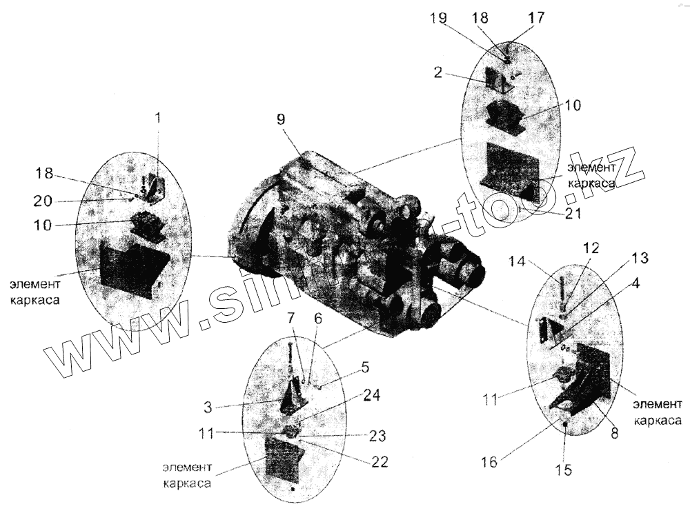Каталог запасных частей к технике: АМАЗ МАЗ-103 (2005). Установка силового агрегата