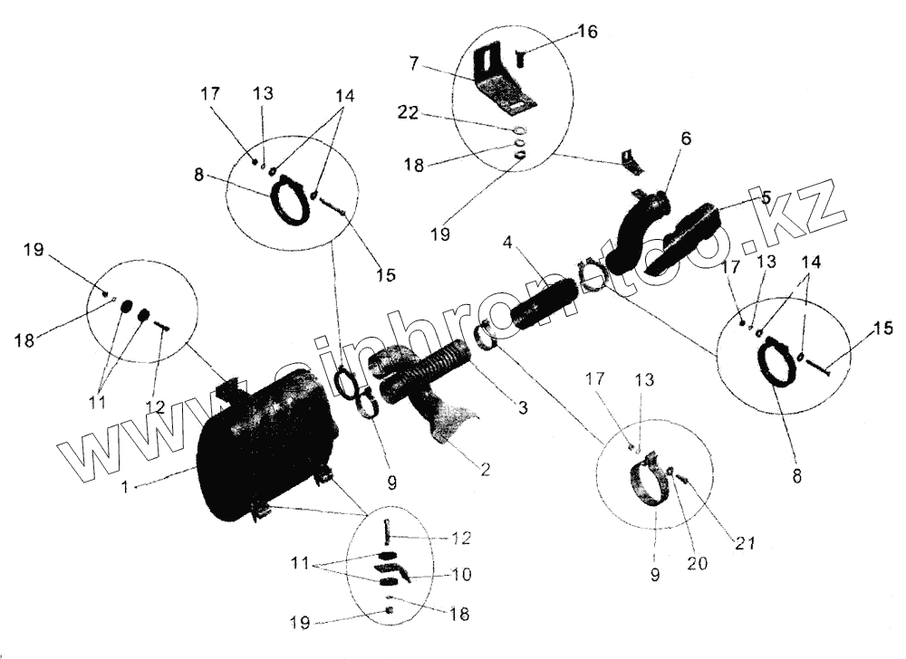 Каталог запасных частей к технике: АМАЗ МАЗ-103 (2005). Установка системы выпуска отработавших газов