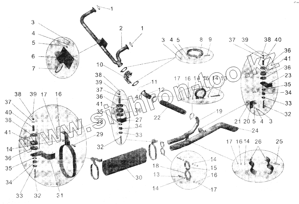 Каталог запасных частей к технике: АМАЗ МАЗ-103 (2005). Установка системы выпуска отработавших газов