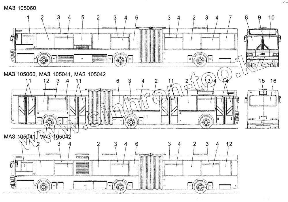 Каталог запасных частей к технике: АМАЗ МАЗ-103 (2005). Установка стекол на МАЗ 105