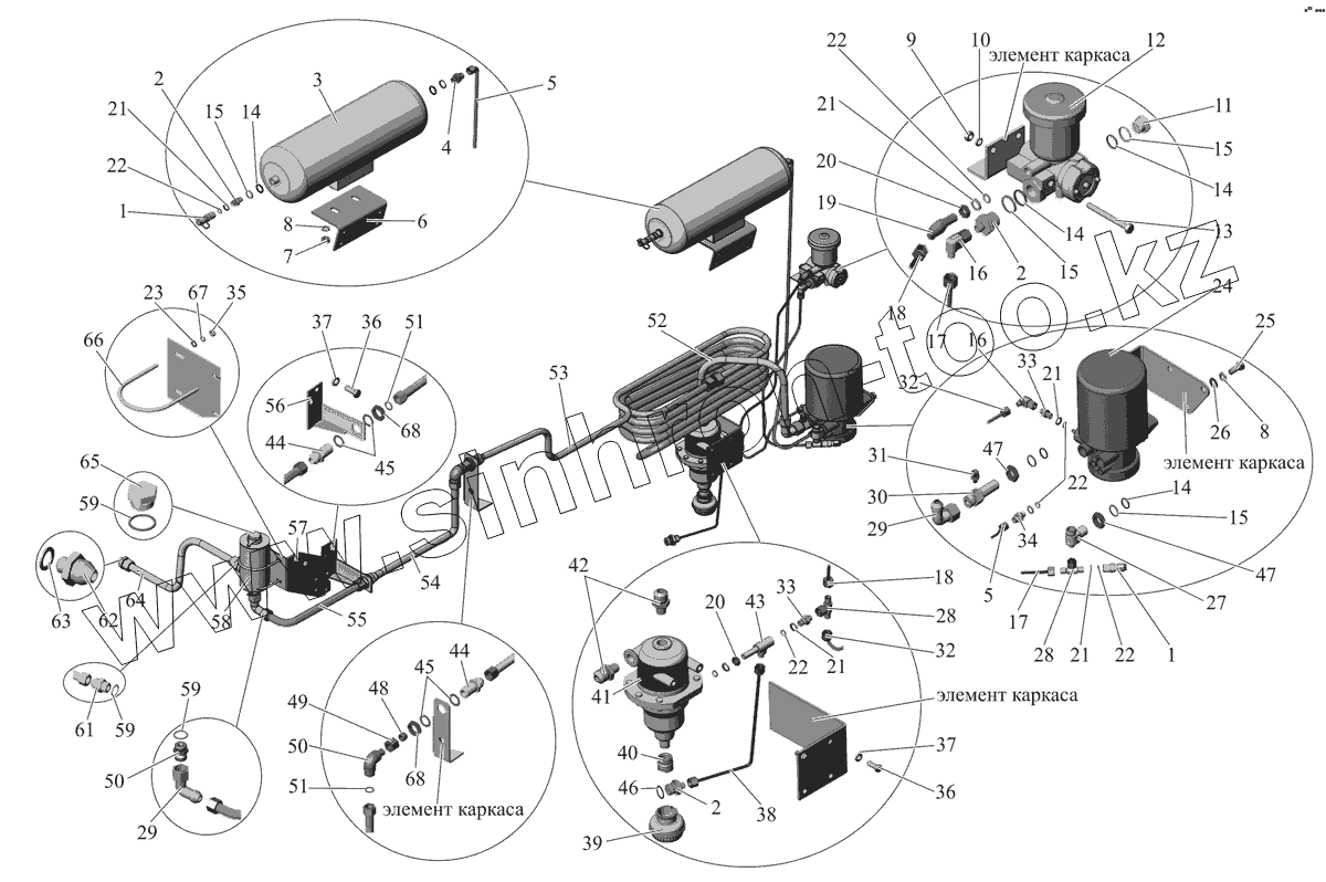 Каталог запасных частей к технике: АМАЗ МАЗ-103 (2011). Блок подготоки сжатого воздуха 103-3512001-30