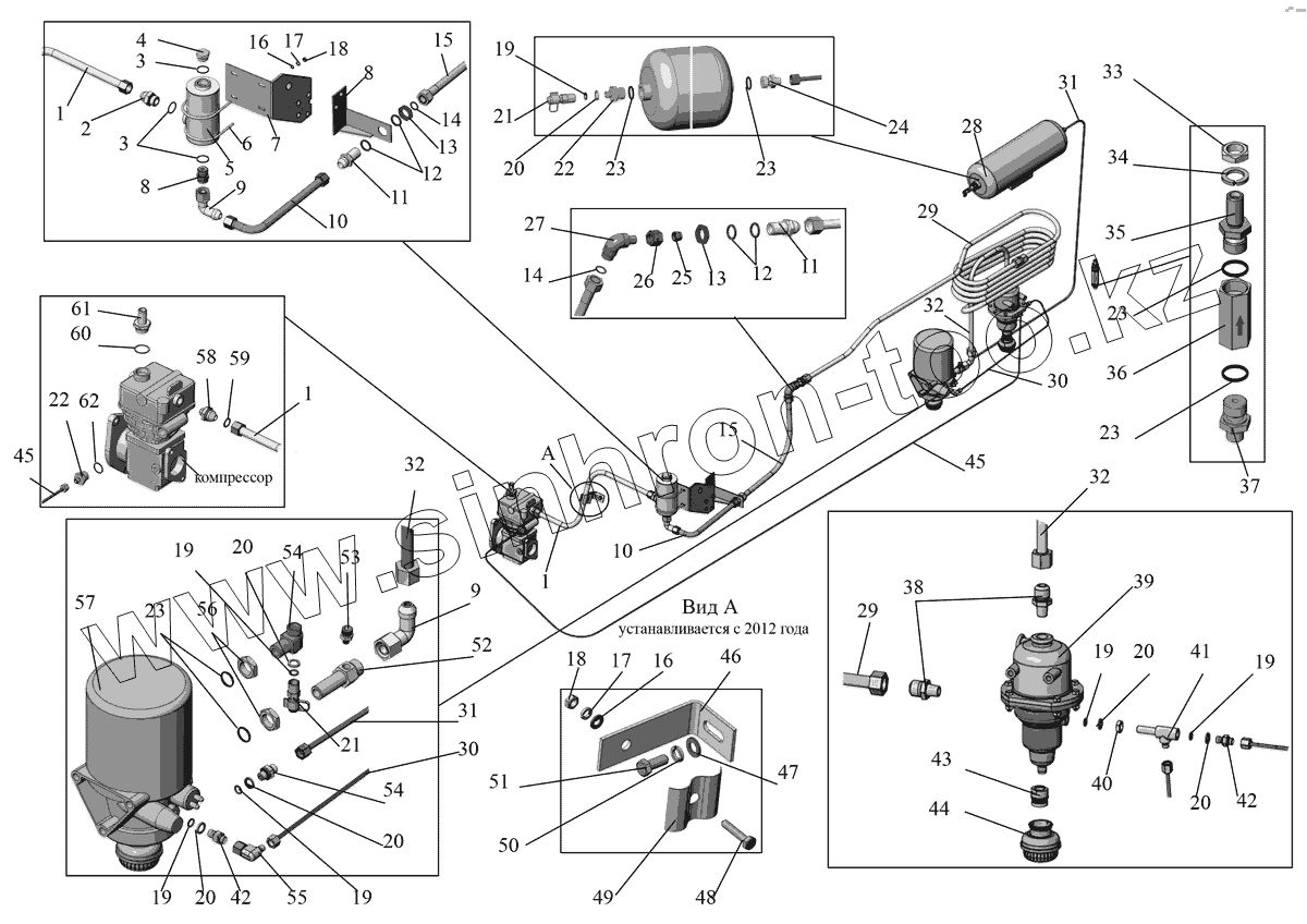 Каталог запасных частей к технике: АМАЗ МАЗ-103 (2011). Блок подготовки сжатого воздуха 103476-3512001
