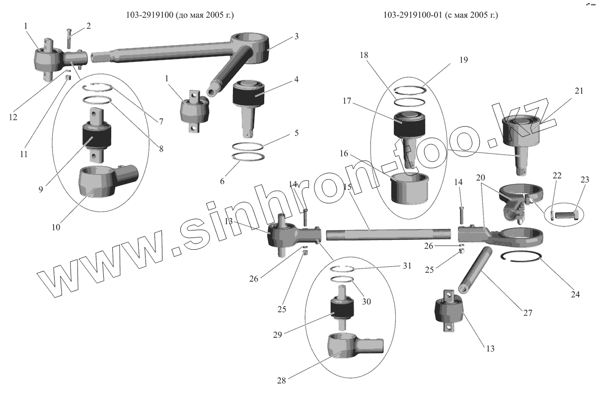 Каталог запасных частей к технике: АМАЗ МАЗ-103 (2011). Штанга 103-2919100
