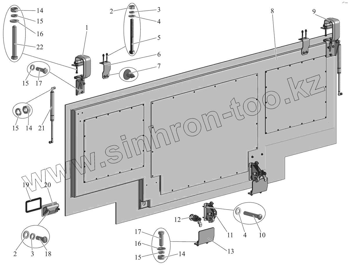 Каталог запасных частей к технике: АМАЗ МАЗ-103 (2011). Установка крышки люка моторного отсека