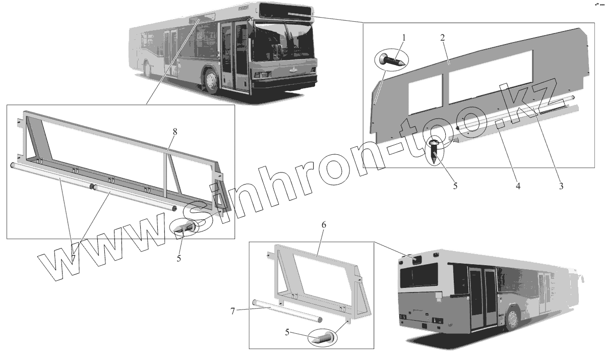 Каталог запасных частей к технике: АМАЗ МАЗ-103 (2011). Установка осветителей маршрутных указателей 103-5300100-10