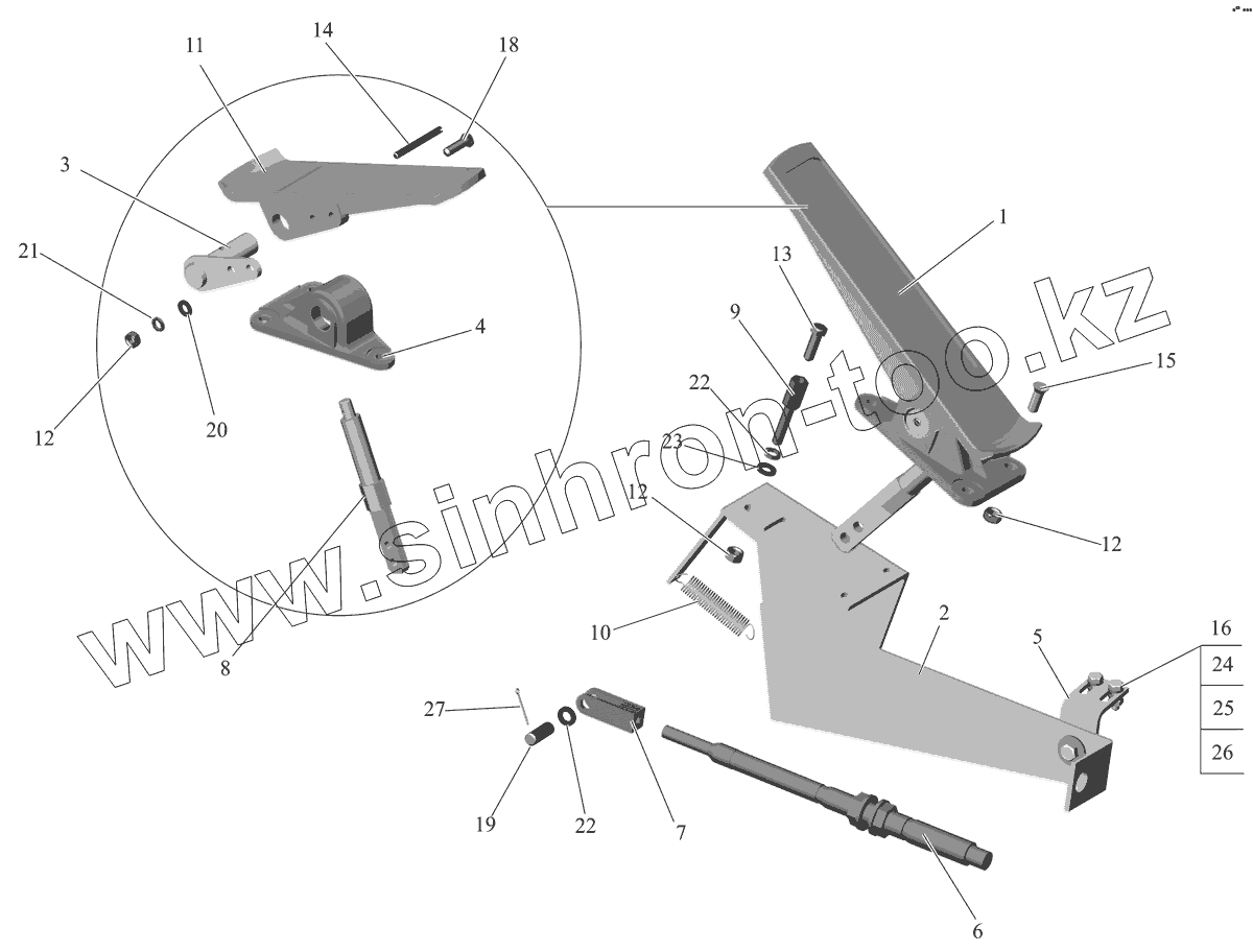 Каталог запасных частей к технике: АМАЗ МАЗ-103 (2011). Установка педали привода управления двигателем 101-1108003