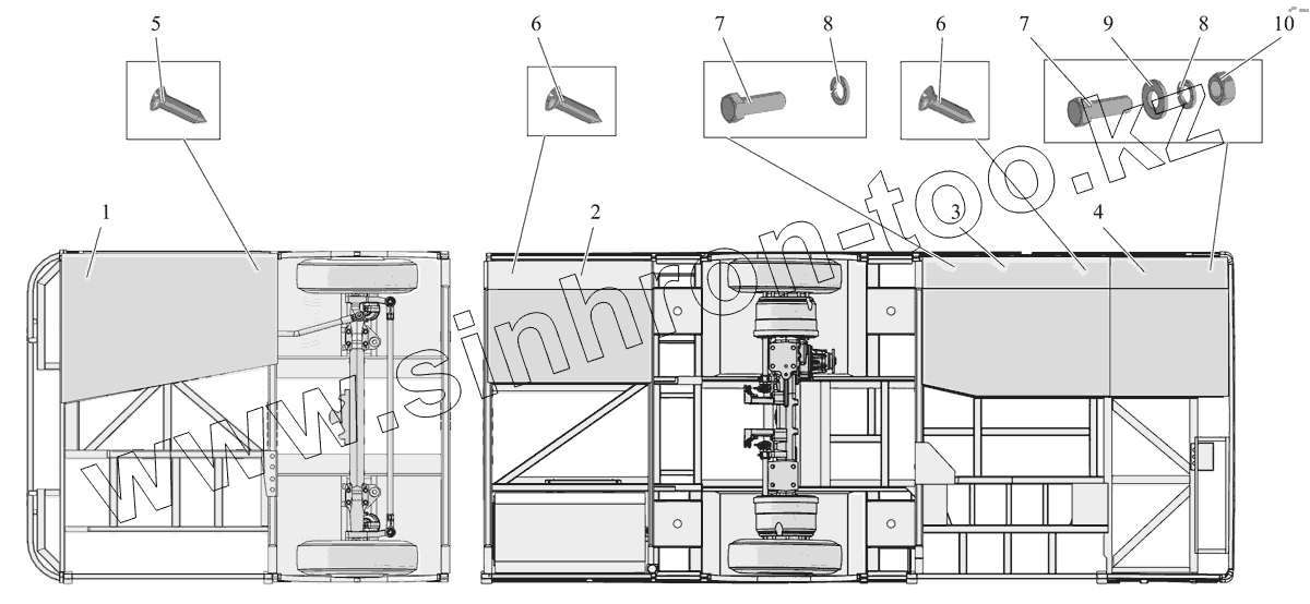 Каталог запасных частей к технике: АМАЗ МАЗ-103 (2011). Установка защиты по днищу