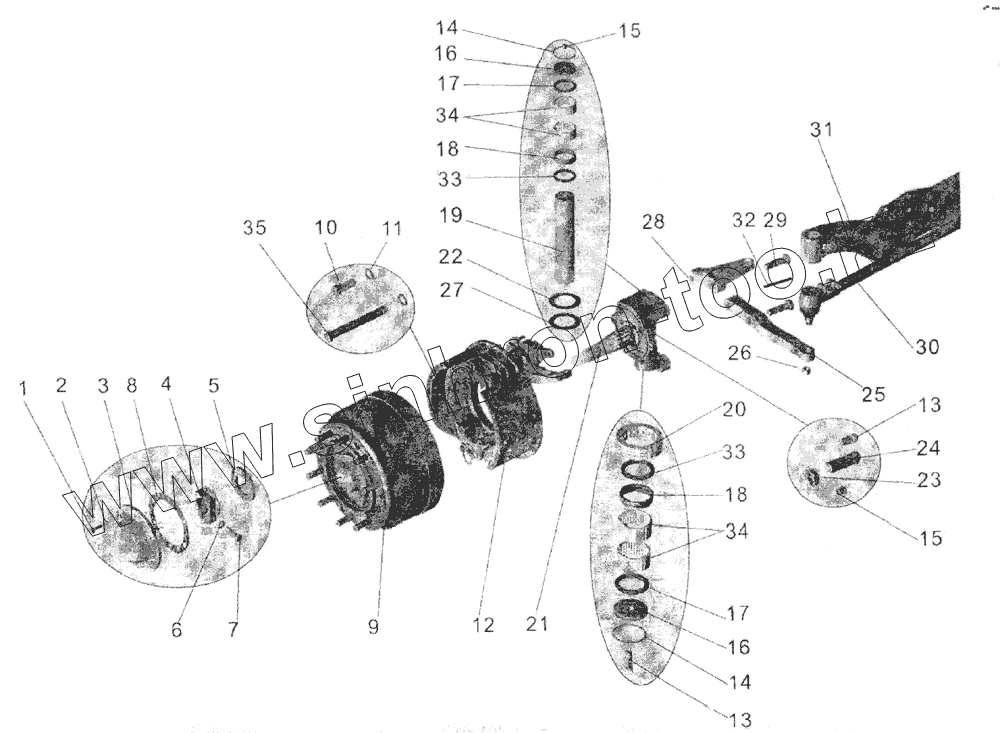 Каталог запасных частей к технике: АМАЗ МАЗ-104. Ось передняя