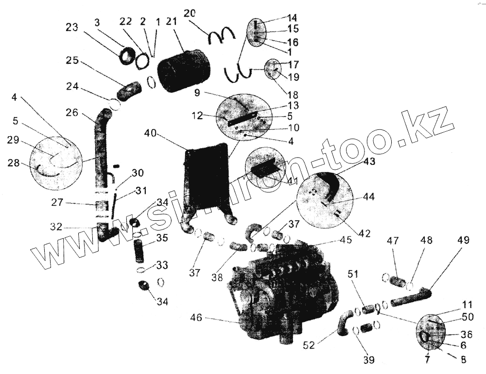 Каталог запасных частей к технике: АМАЗ МАЗ-104. Установка воздухоочистителя и охладителя наддува