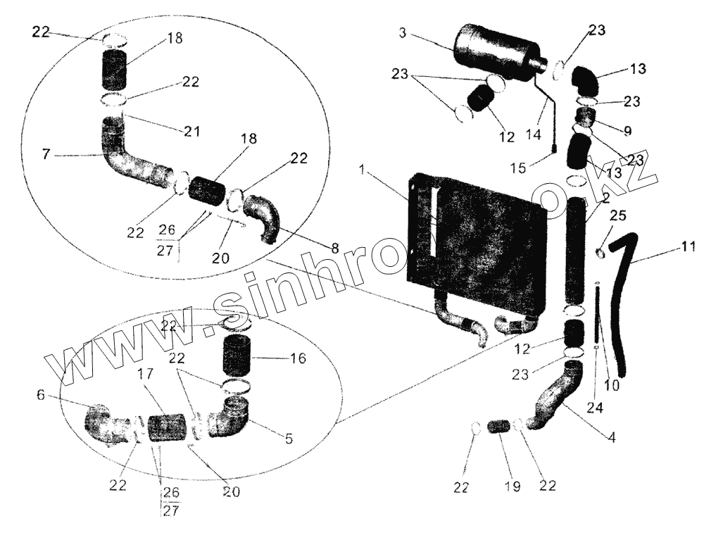 Каталог запасных частей к технике: АМАЗ МАЗ-104. Установка воздухоочистителя и охладителя наддува