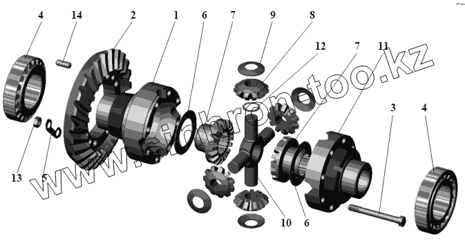 Каталог запасных частей к технике: АМАЗ МАЗ-104 (2011). Дифференициал заднего моста 104-2403010-10