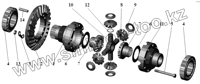 Каталог запасных частей к технике: АМАЗ МАЗ-104 (2011). Дифференициал заднего моста 104-2403010-10