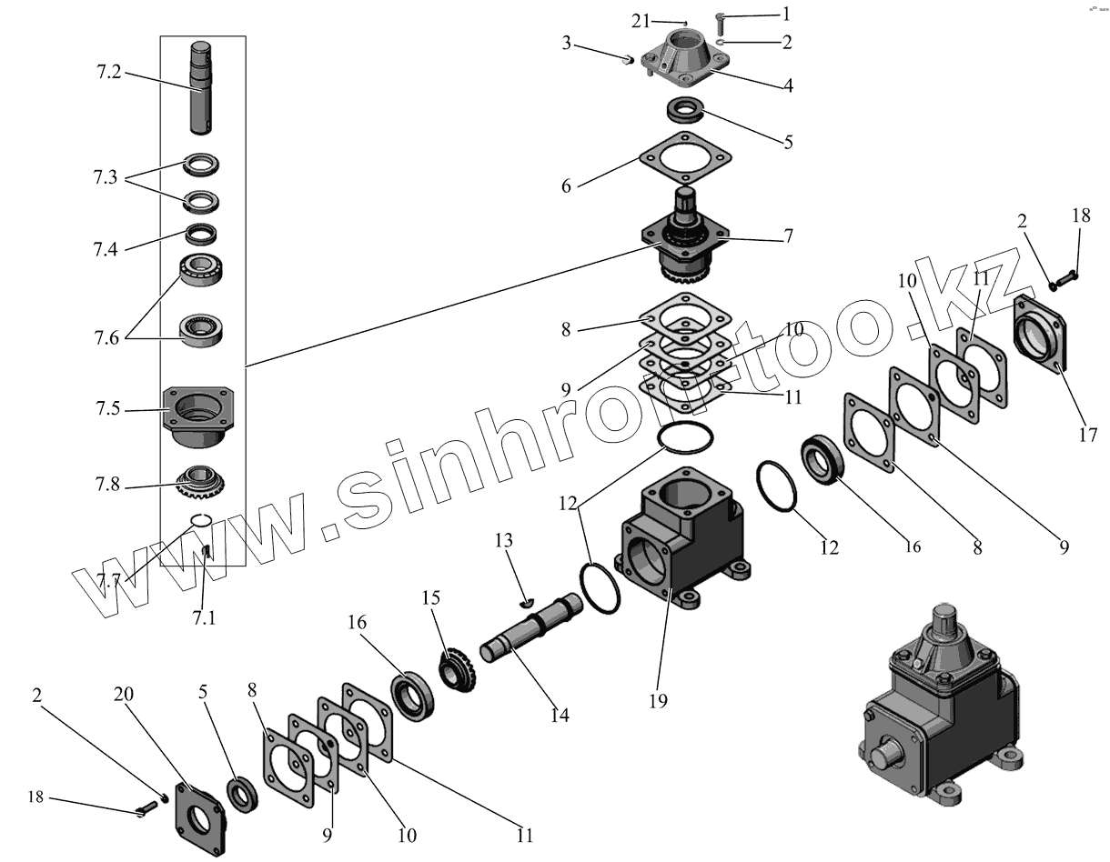 Каталог запасных частей к технике: АМАЗ МАЗ-104 (2011). Редуктор угловой 104-3426010