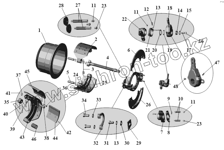 Каталог запасных частей к технике: АМАЗ МАЗ-104 (2011). Тормозной механизм заднего моста МАЗ-104