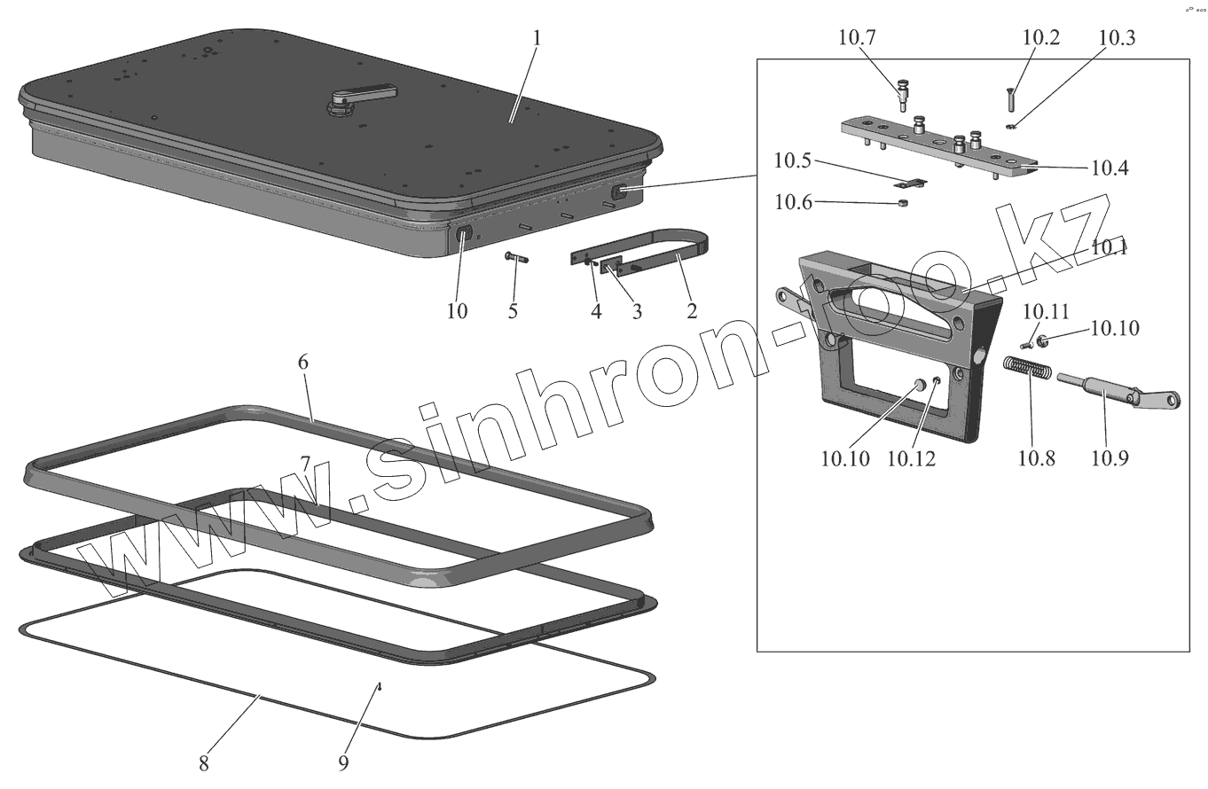 Каталог запасных частей к технике: АМАЗ МАЗ-104 (2011). Установка люков аварийных 151-5713160
