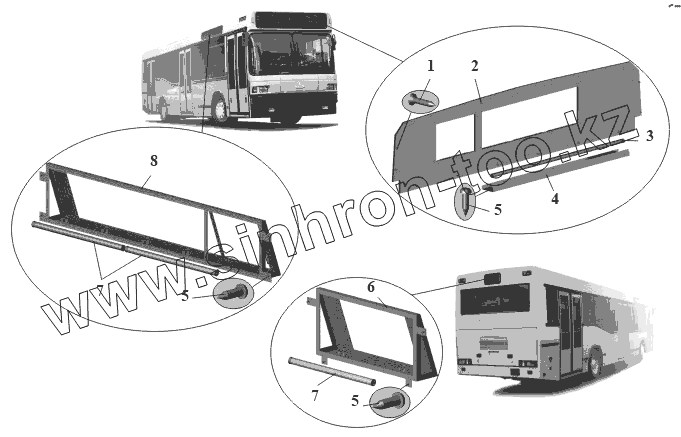 Каталог запасных частей к технике: АМАЗ МАЗ-104 (2011). Установка осветителей маршрутных указателей 103-5300100-10