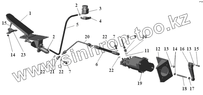 Установка привода управления сцеплением 104-1602002-35