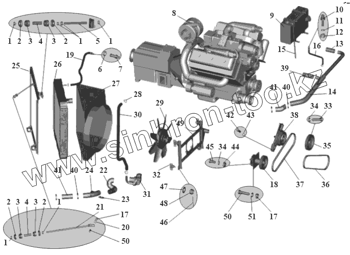 Каталог запасных частей к технике: АМАЗ МАЗ-104 (2011). Установка системы охлаждения 104-1300005-16