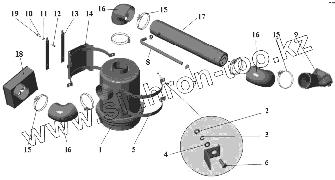 Каталог запасных частей к технике: АМАЗ МАЗ-104 (2011). Установка воздухоочистителя 104-1100020-31