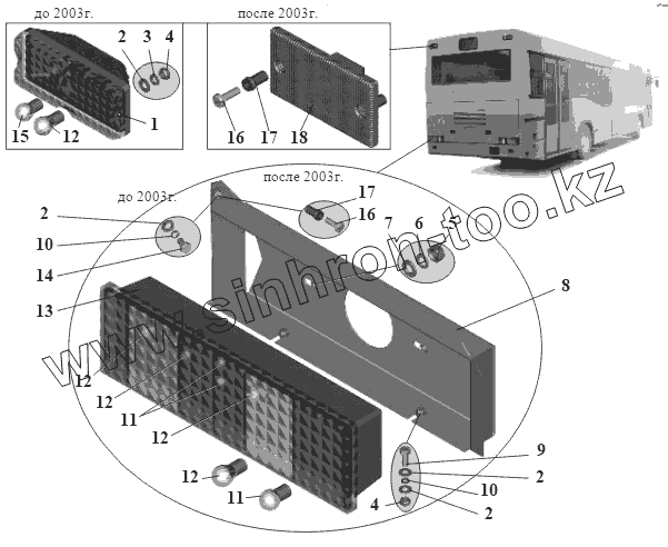 Каталог запасных частей к технике: АМАЗ МАЗ-104 (2011). Установка задних фонарей 103-3700009 / 103-3700012