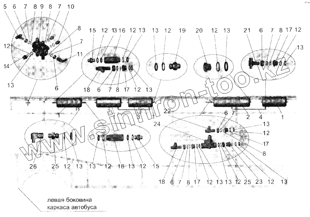 Каталог запасных частей к технике: АМАЗ МАЗ-104С. Блок ресиверов левый и защитные устройства