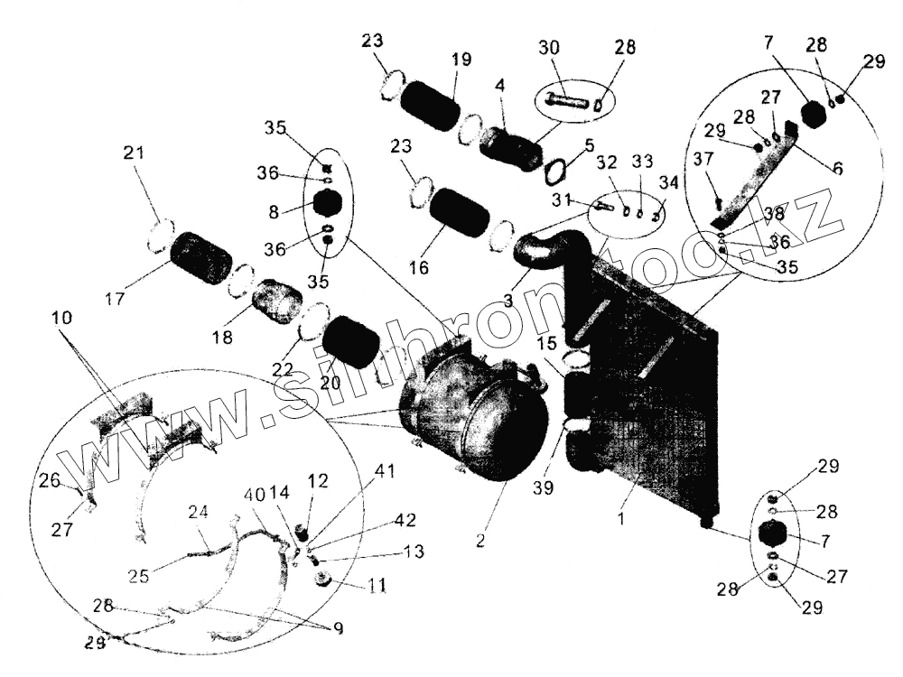 Каталог запасных частей к технике: АМАЗ МАЗ-104С. Установка воздухоочистителя и охладителя наддува