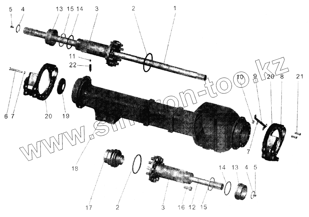 Каталог запасных частей к технике: АМАЗ МАЗ-105. Картер заднего моста с полуосями и цапфами