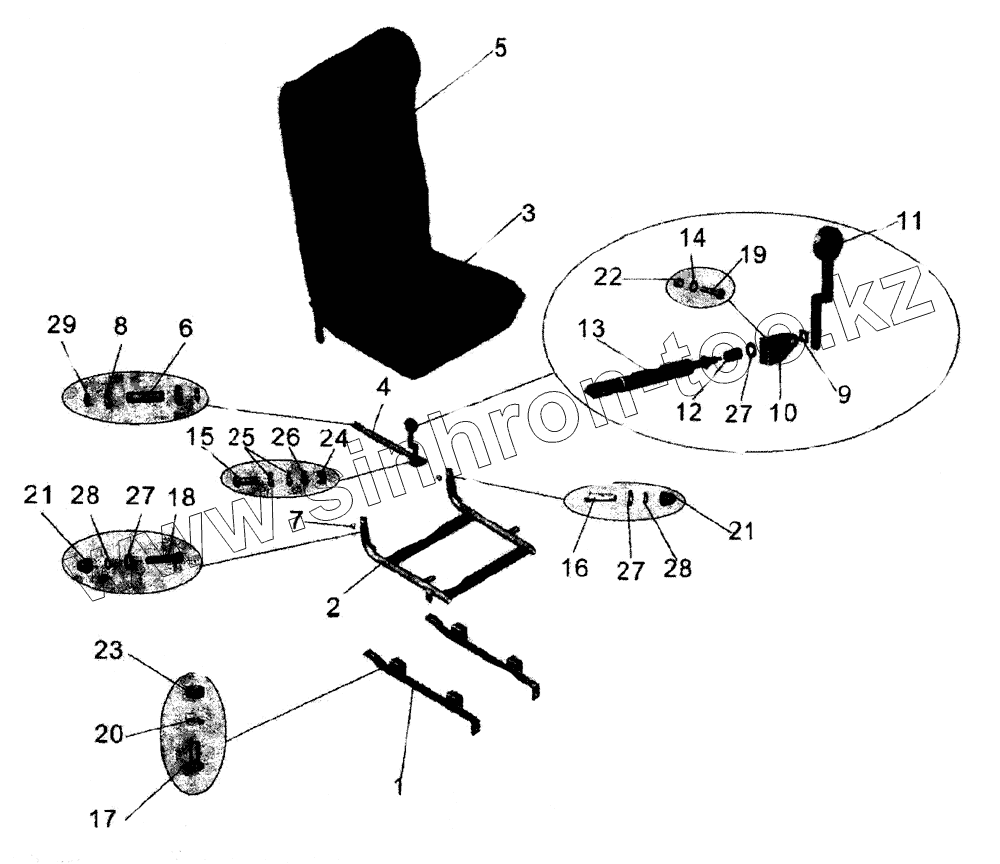 Каталог запасных частей к технике: АМАЗ МАЗ-105. Сиденье одноместное