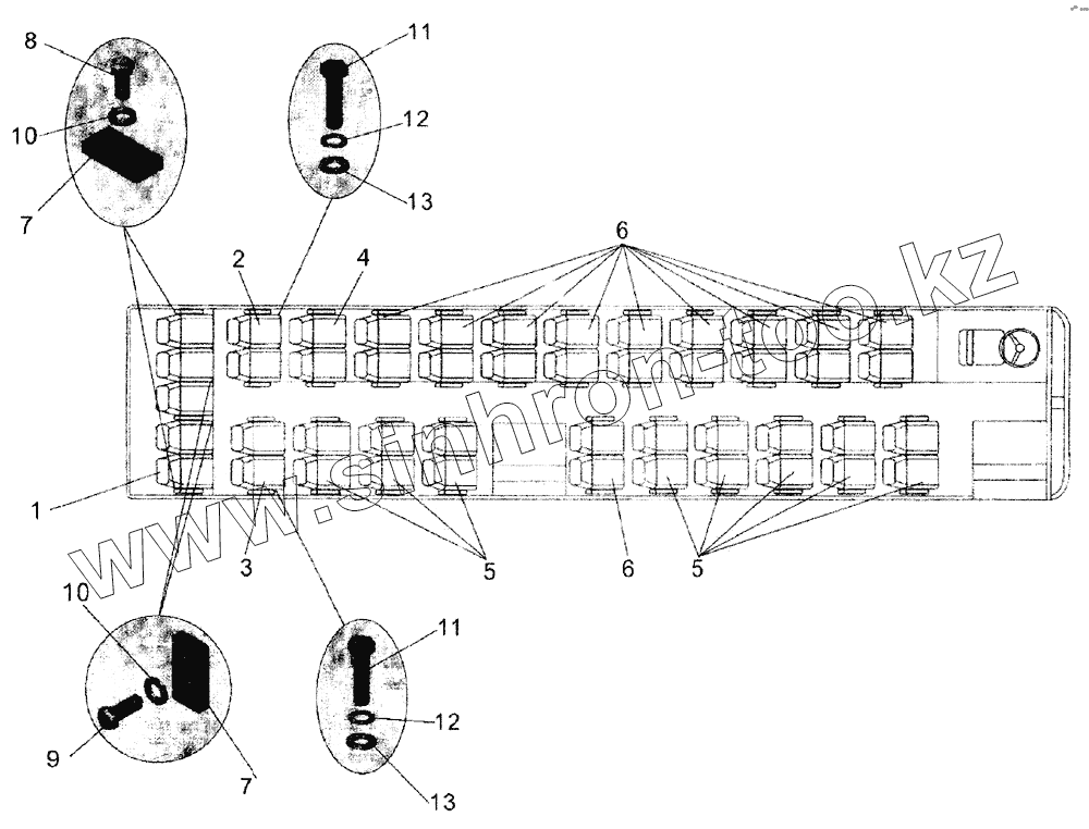 Каталог запасных частей к технике: АМАЗ МАЗ-105. Установка сидений пассажирских
