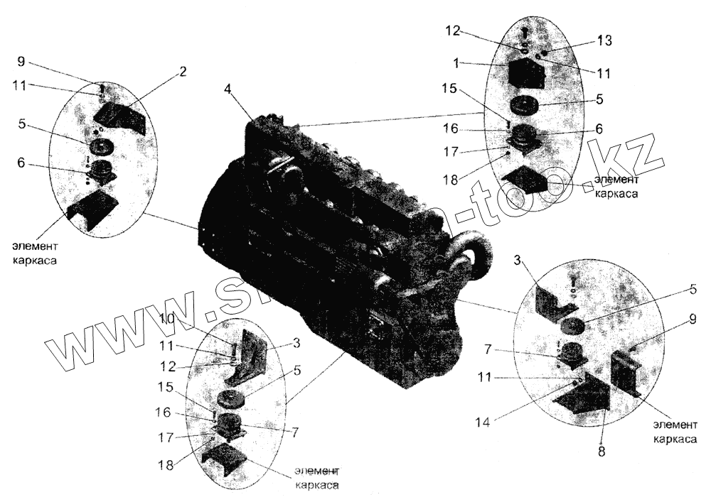 Каталог запасных частей к технике: АМАЗ МАЗ-105. Установка силового агрегата (до марта 2005 года)