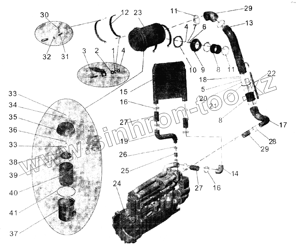 Каталог запасных частей к технике: АМАЗ МАЗ-105. Установка воздухоочистителя и охладителя наддува