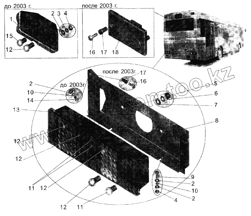 Каталог запасных частей к технике: АМАЗ МАЗ-105. Установка задних фар