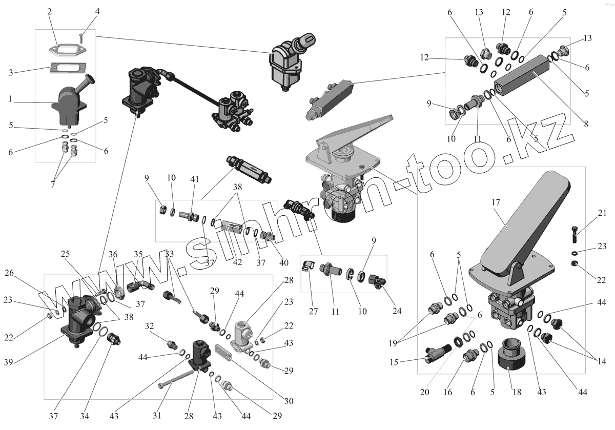 Каталог запасных частей к технике: АМАЗ МАЗ-105 (2011). Аппараты управления тормозами 105-3504001