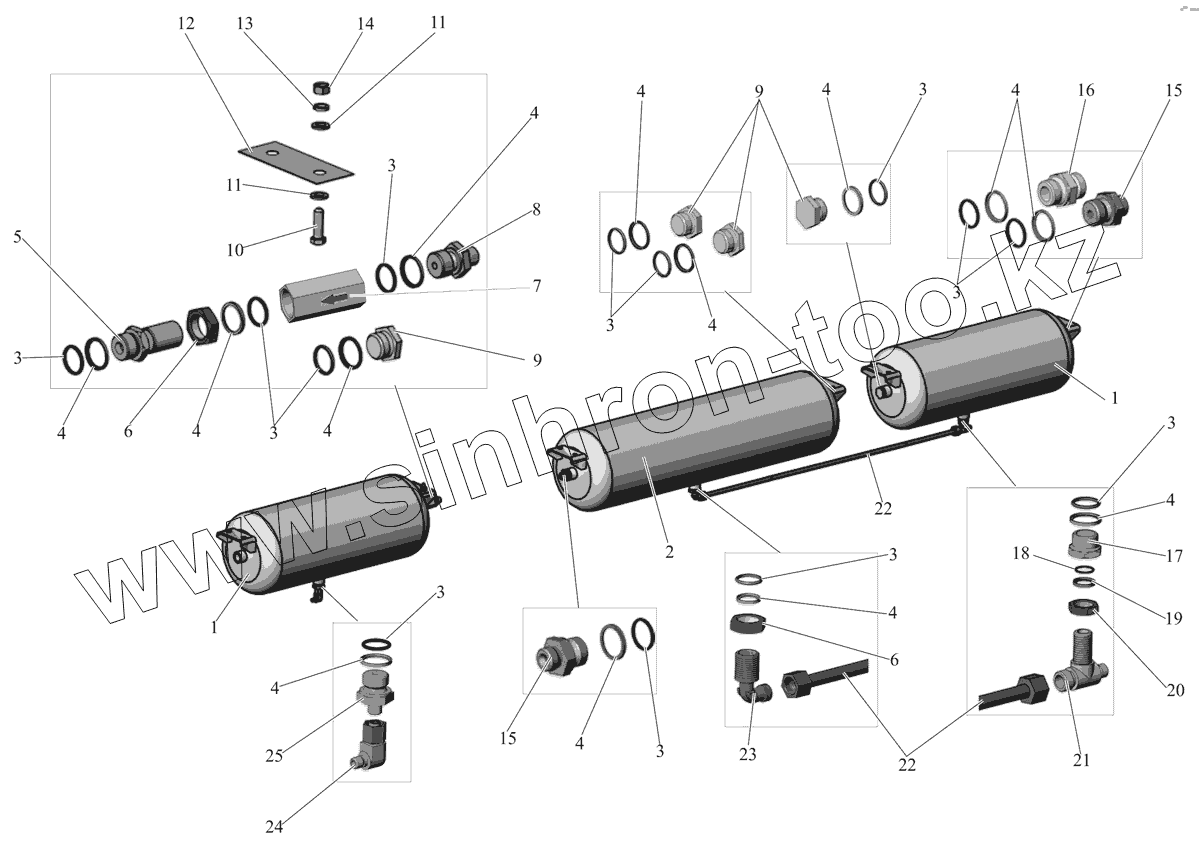 Каталог запасных частей к технике: АМАЗ МАЗ-105 (2011). Блок ресиверов правый 105-351300