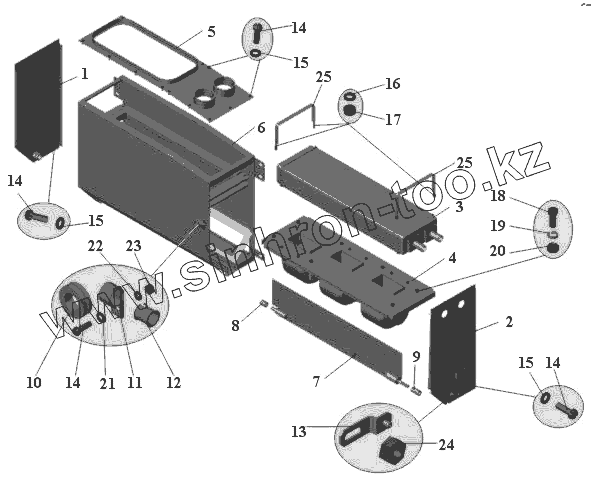 Каталог запасных частей к технике: АМАЗ МАЗ-105 (2011). Фронтальный отопитель (до 2007г.)