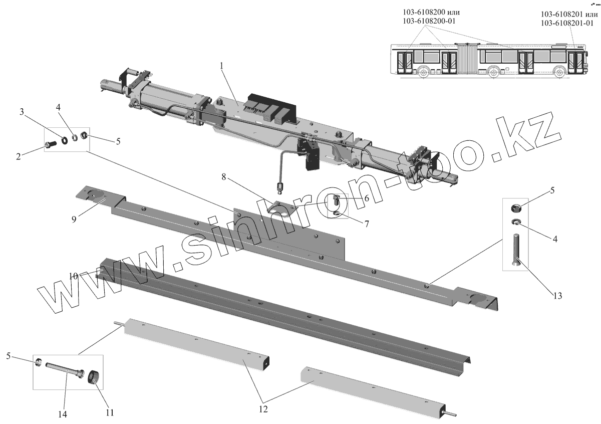 Каталог запасных частей к технике: АМАЗ МАЗ-105 (2011). Механизм открывания дверей