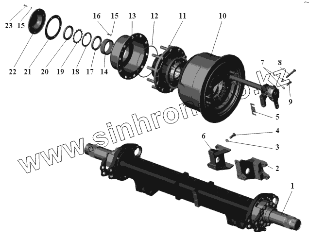 Каталог запасных частей к технике: АМАЗ МАЗ-105 (2011). Ось второй секции 105-2410007
