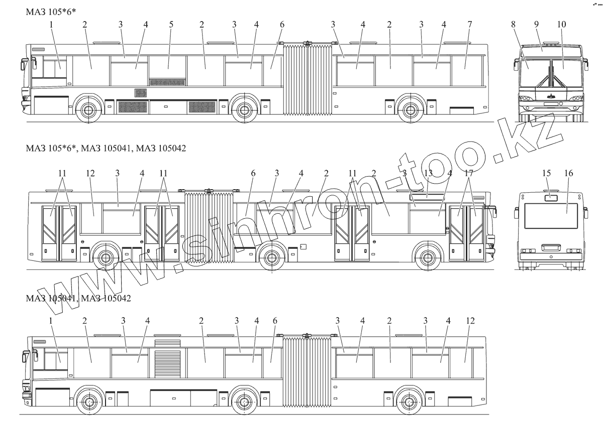 Каталог запасных частей к технике: АМАЗ МАЗ-105 (2011). Остекление с клапанными форточками