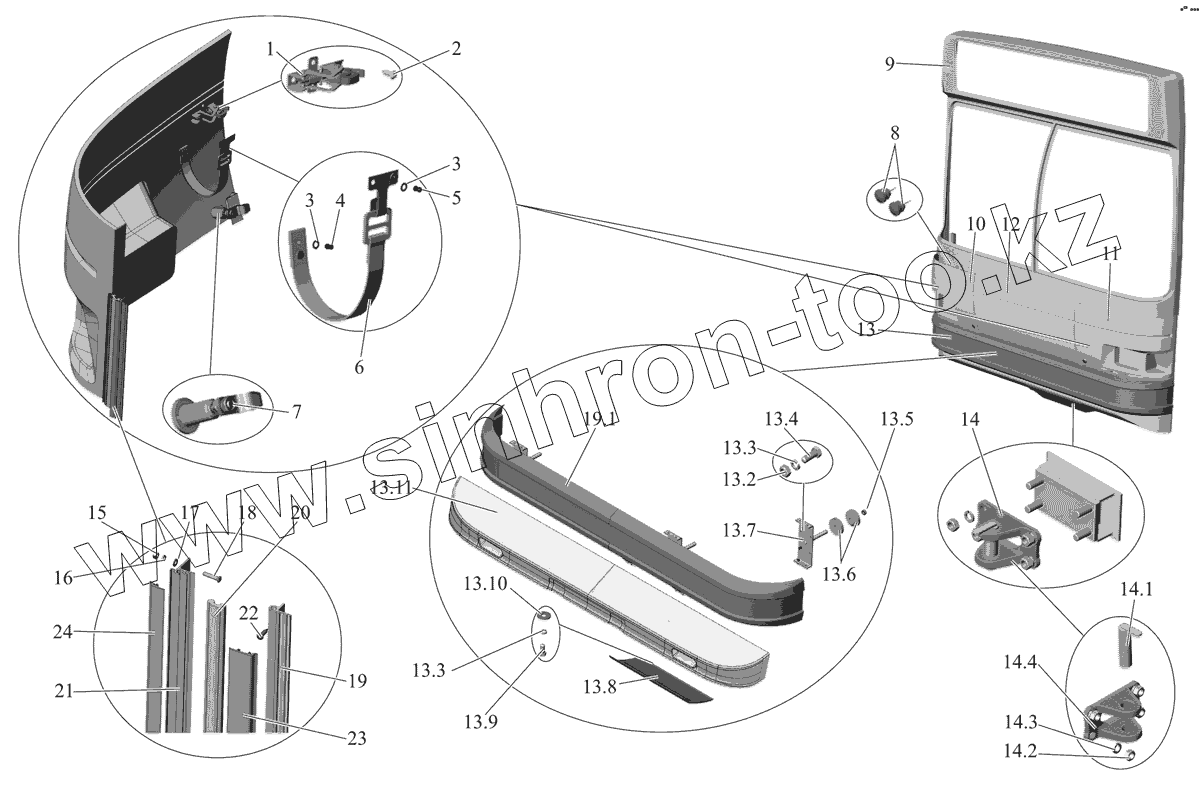 Каталог запасных частей к технике: АМАЗ МАЗ-105 (2011). Установка буфера и деталей облицовки передка
