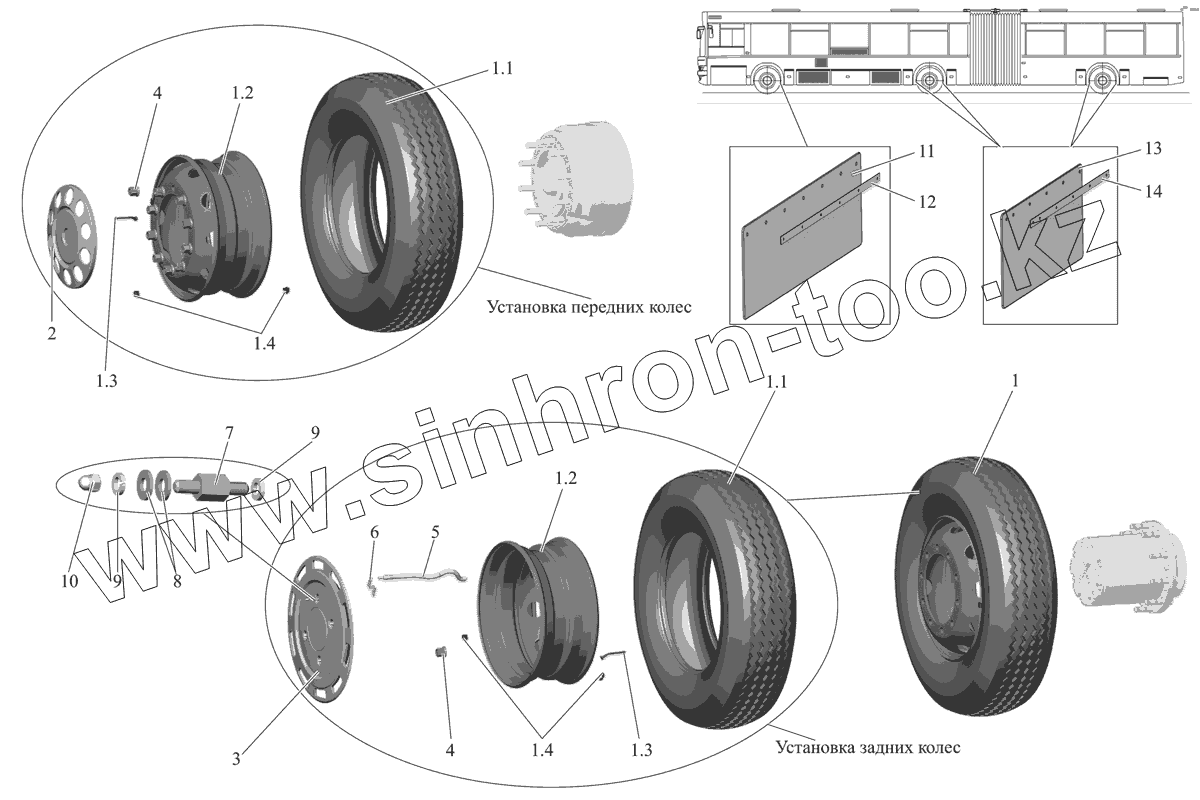 Каталог запасных частей к технике: АМАЗ МАЗ-105 (2011). Установка колес и брызговиков